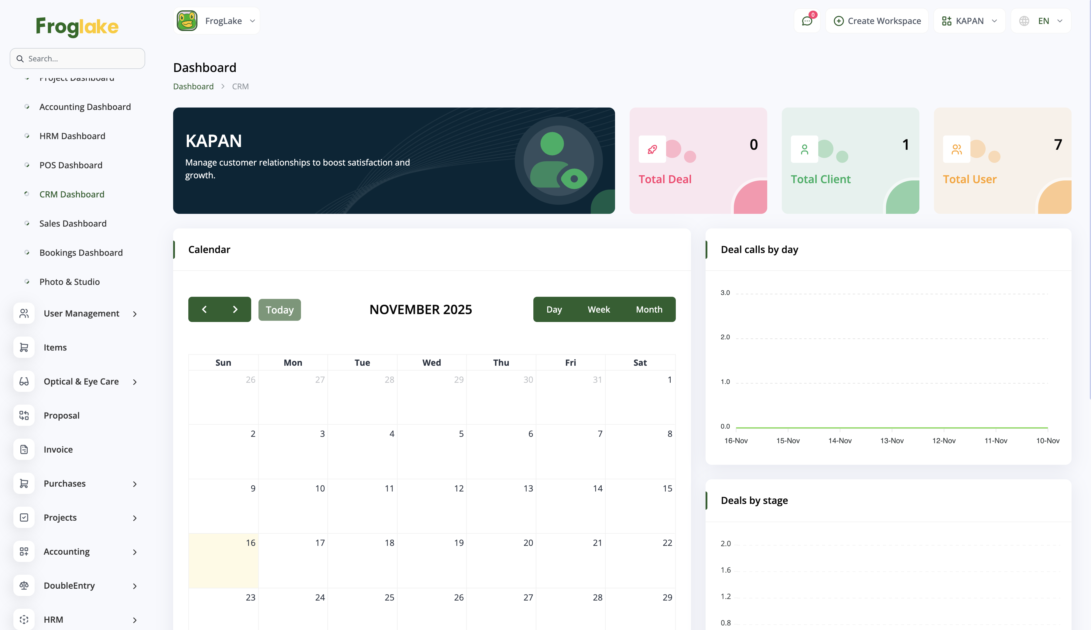 Froglake Dash CRM Module helps you capture, organize, and convert leads effortlessly. Manage multiple pipelines, track interactions, and monitor sales progress, all from one intuitive dashboard. Stay focused on what matters most: building stronger customer relationships and closing deals faster.