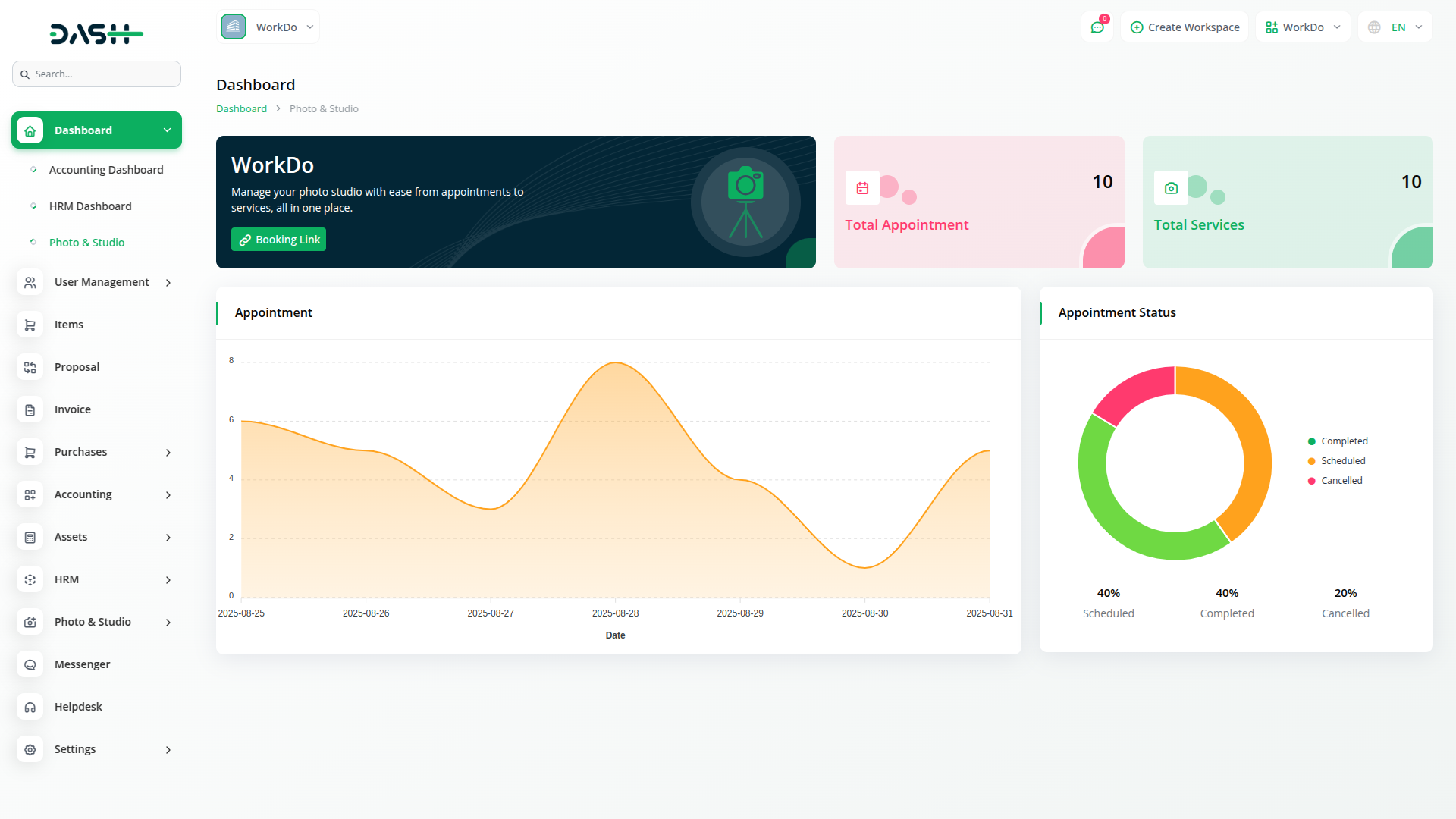 Dash SaaS simplifies appointment and booking management for your photo studio. You can effortlessly schedule client sessions, allowing customers to browse and book appointments at their convenience.
