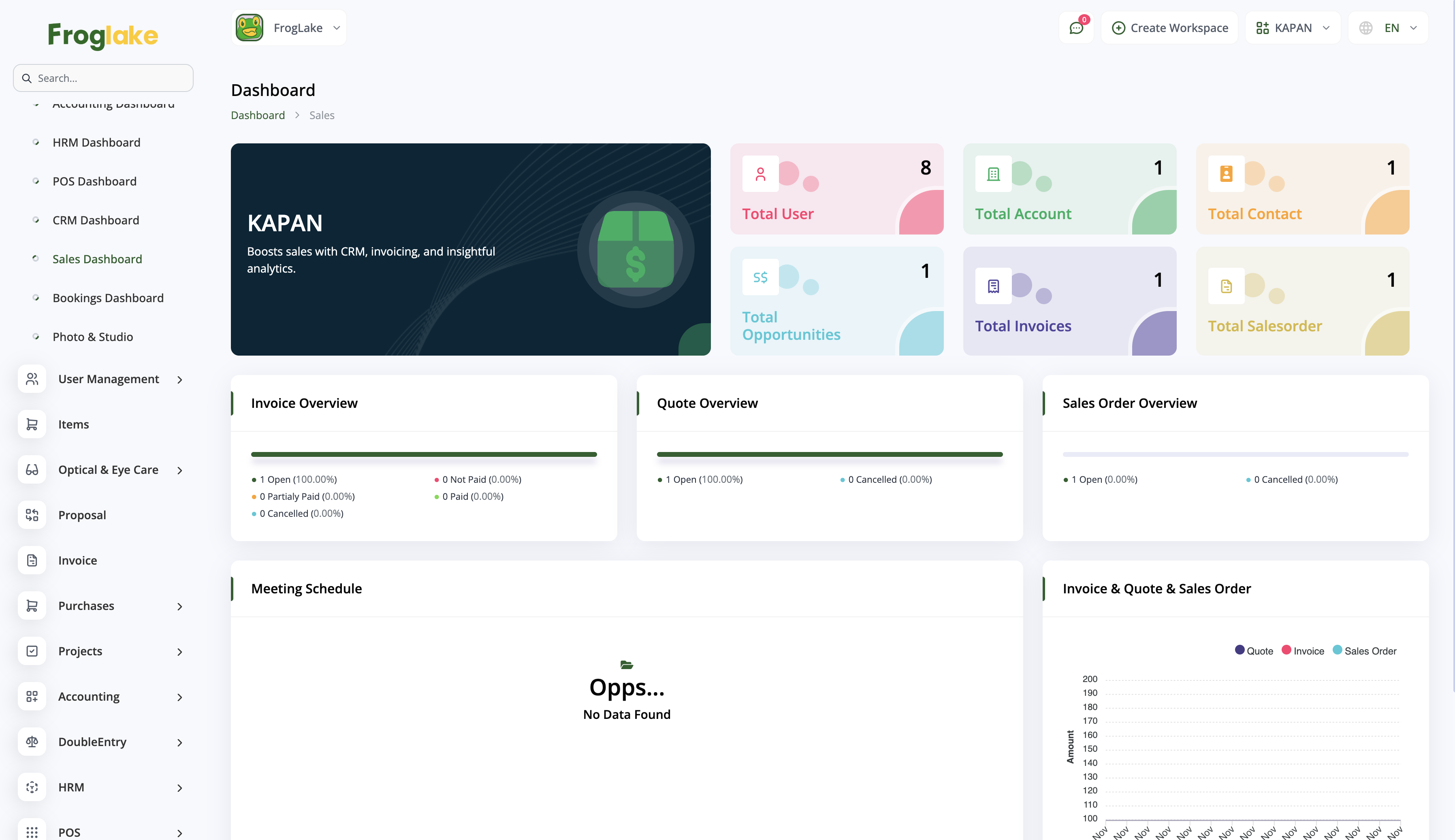 Froglake Dash’s Sales Module brings all your sales activities together in one place — from calls and quotes to meetings and orders. Manage your entire pipeline efficiently, track every opportunity, and never miss a deal again. Streamline your sales workflow and keep your team focused on growth.